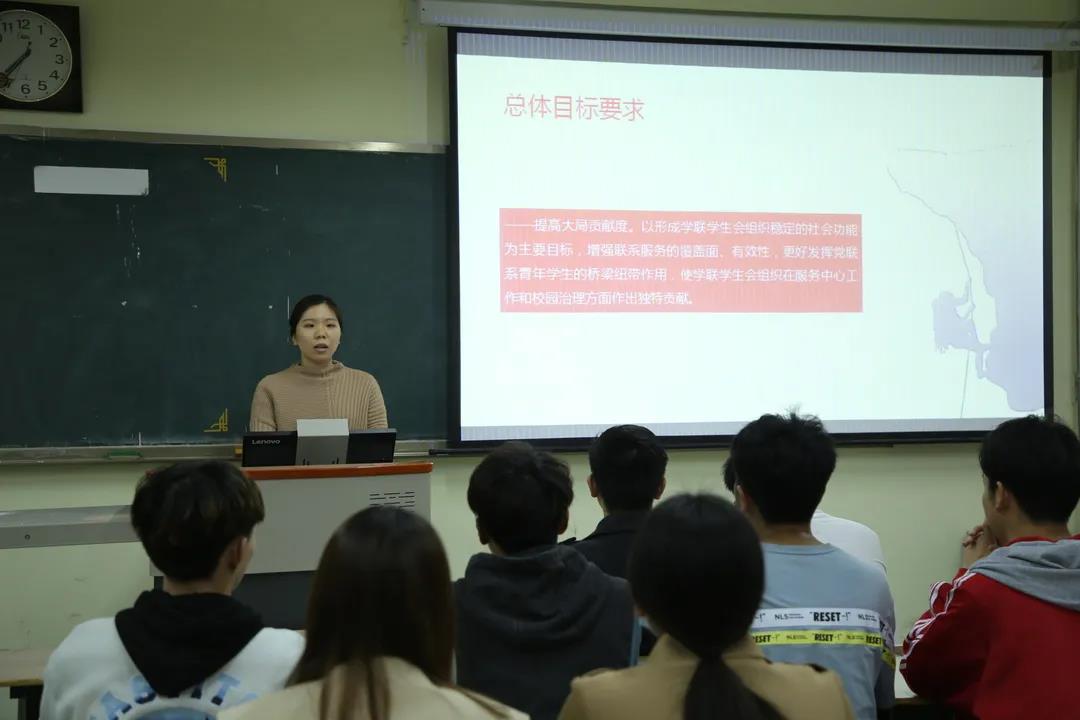 闵颖老师强调:学生会成员要走出校园,走进基层,主动担当社会责任,在共建共治共享的社会治理格局中发挥青年学生作用,要着力提升服务大局水平,着力深化改革创新,不断提升同学满意度、大局贡献度、社会认可度,树立起富有理想、关心同学、清新阳光的组织形象,更好的组织动员广大青年学生坚定跟党走、奋进新时代,为党和国家事业发展做出贡献。