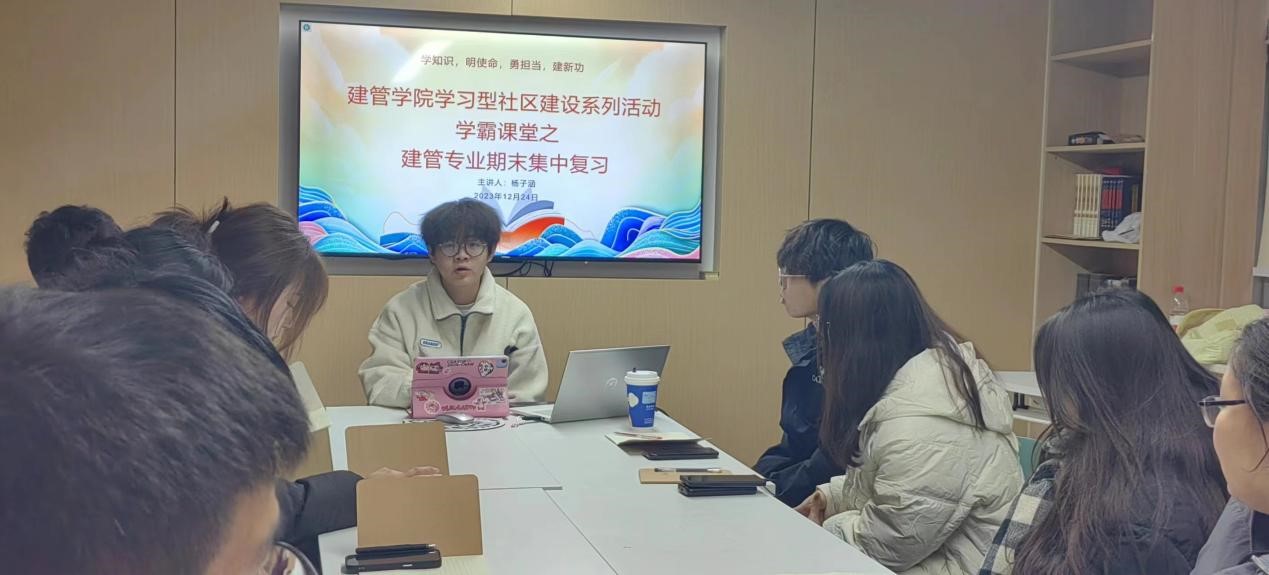 2023年12月24日,建筑管理学院举办期末集中复习讲座,本次讲堂邀请了各专业优秀学长学姐在学1一站式服务中心为大一同学分享备考经验以及未来规划。