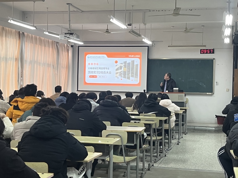 12月18日上午,根据新宝gg2023级建设工程监理专业人才培养方案要求和教学计划安排,建筑管理学院建设工程监理专业师生在教三楼B504召开顶岗实习2暨毕业实习动员及安全教育大会。